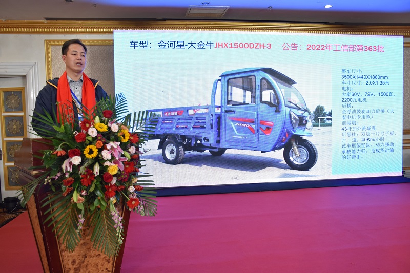 此次盛會(huì ),恒勝金河攜手渠道商家,應市場(chǎng)需求之變,聚焦時(shí)代變革,聚勢破局,共探創(chuàng )新之路,共同見(jiàn)證恒勝金河煥新升級的閃耀時(shí)刻。會(huì )議開(kāi)始,來(lái)自北京昌平的優(yōu)秀經(jīng)銷(xiāo)商代表夏保起率先發(fā)言,他表示,多年來(lái),奮發(fā)有為的恒勝金河始終敢于迎接大環(huán)境的變化,不斷進(jìn)行產(chǎn)品、渠道、營(yíng)銷(xiāo)等層面的變革創(chuàng )新,對于恒勝金河所取得的成績(jì),以及跟隨它實(shí)現的財富夢(mèng)想,每一位經(jīng)銷(xiāo)商家人都感到無(wú)比自豪,現如今,恒勝金河正一步一個(gè)腳印向著(zhù)更高更遠的目標奮進(jìn),只有緊跟它的步伐,才不會(huì )在市場(chǎng)競爭中掉隊。變革往往催生新機遇,把握市場(chǎng)潮流并且敢于創(chuàng )新的金河公司,已然成為行業(yè)佼佼者,更成為引領(lǐng)渠道商家致勝市場(chǎng)的標桿。會(huì )議中,恒勝金河總經(jīng)理陳文通就“品牌認知與認同、戰略支撐、營(yíng)銷(xiāo)新業(yè)態(tài)、產(chǎn)品謀劃、筑夢(mèng)未來(lái)”五大層面發(fā)表講話(huà),陳總表示,恒勝金河擁有創(chuàng )新的發(fā)展基因,2023年,恒勝金河全面調整產(chǎn)品結構,前瞻布局戰略規劃,不斷激活自身的強勢基本盤(pán),走在了一條良好正向的變革之道。存量博弈時(shí)代,布局決定結局,唯有乘勢而上搶抓新機遇,才能立于不敗之地。陳總強調,2024年,恒勝金河將繼續深耕產(chǎn)品創(chuàng )新研發(fā),堅持品質(zhì)和價(jià)值服務(wù),堅定不移引領(lǐng)行業(yè)高質(zhì)量發(fā)展,攜手渠道商家共同開(kāi)拓市場(chǎng),實(shí)現雙贏(yíng)、多贏(yíng)!技術(shù)研發(fā)一部部長(cháng)趙松領(lǐng)與技術(shù)研發(fā)二部部長(cháng)張得軍分別就微轎車(chē)型和貨斗車(chē)型進(jìn)行技術(shù)講解,創(chuàng )新求發(fā)展,創(chuàng )造新需求,引領(lǐng)新生活,前瞻產(chǎn)品才是王道。恒勝·金河星全系產(chǎn)品具有工信部目錄公告,在各地政策擠壓的市場(chǎng)環(huán)境下,助力渠道商家賣(mài)車(chē)無(wú)憂(yōu)。