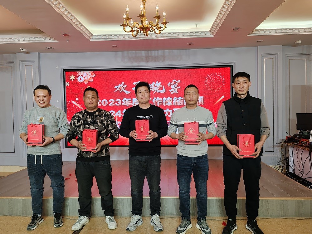 首先由行政辦宣讀會(huì )場(chǎng)紀律,然后回顧2023年公司發(fā)展歷程,總結過(guò)去一年我們取得的成績(jì)與不足之處,展望美好2024。接下來(lái)是激動(dòng)人心的頒獎表彰時(shí)刻,五位年度優(yōu)秀員工脫穎而出,由生產(chǎn)副總劉海峰與銷(xiāo)售副總郭文斌為他們頒獎,公司總經(jīng)理、黨支部書(shū)記陳文通上臺與其合影留念。