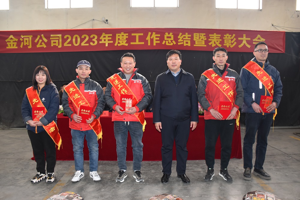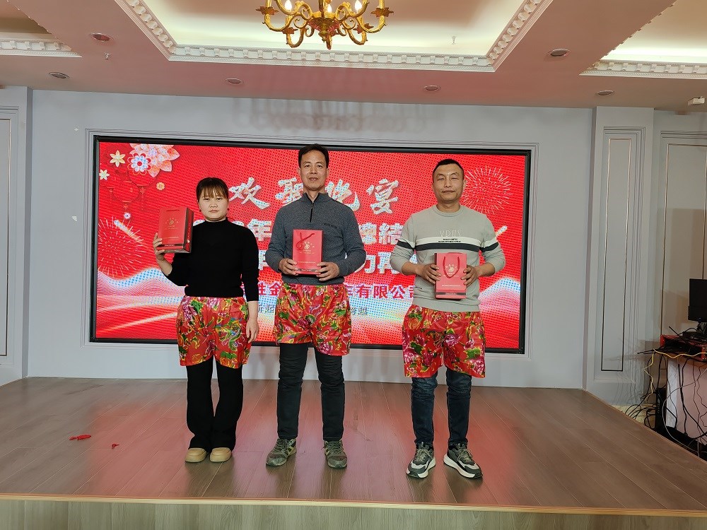 總結大會(huì )在洪亮的“金河發(fā)展,我的責任”中結束,陳總與主席臺高管中干祝愿所有金河員工及家人,身體健康,家庭幸福,龍年大吉,并深鞠一躬!春節禮品也由管理者發(fā)放到了每個(gè)員工手中,從員工臉上洋溢的笑容可以看到美好的2024年在向我們揮手。