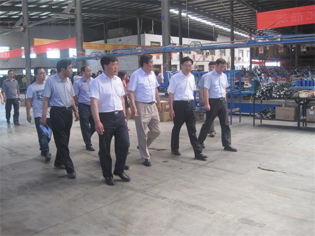 市長(cháng)張新華在總經(jīng)理陳文通的陪同下視察部分車(chē)間。