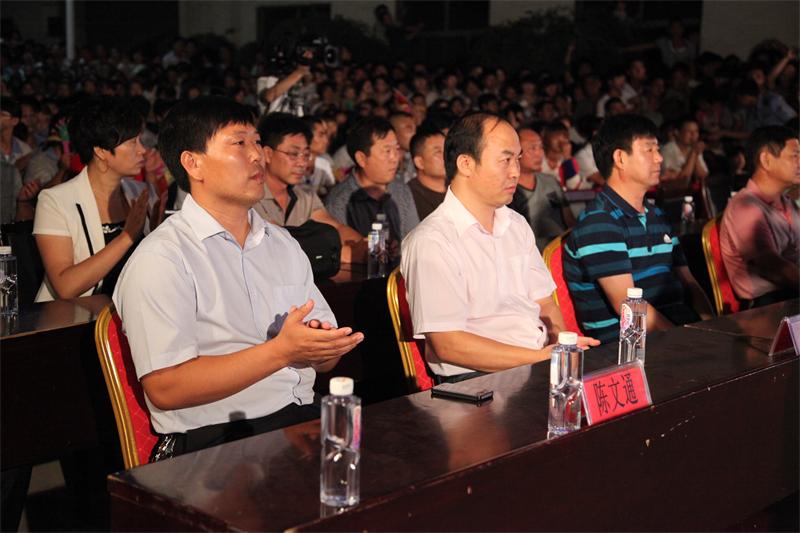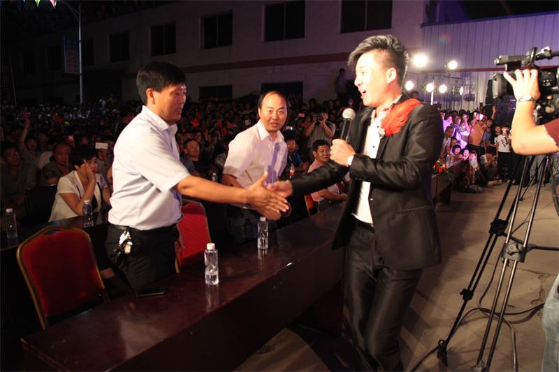 9月9日晚7:30分,公司舉辦“助力十月突破,金河在行動(dòng)大型文藝晚會(huì )”,董事長(cháng)張和龍、總經(jīng)理陳文通、市領(lǐng)導王占強、葉全樂(lè )和市電視臺臺長(cháng)李福順、工信局長(cháng)杜文華、工商聯(lián)主席董衛兵及鎮黨委書(shū)記、鎮長(cháng)在主席臺就位,來(lái)自全市近萬(wàn)名觀(guān)眾一起觀(guān)看了演出。市場(chǎng)部員工演唱《咱金河的人》鏗鏘有力,氣勢宏大,彰顯出金河人團結一致,共創(chuàng )佳績(jì)的決心;后勤員工一曲《小蘋(píng)果》廣場(chǎng)舞,再次點(diǎn)燃現場(chǎng),吶喊聲不斷。演出隊的節目更是精彩紛呈,星光大道明星“楊帆”的一首《呼倫貝爾大草原》將現場(chǎng)氣氛推向高潮,帶動(dòng)了所有觀(guān)眾,金河全體員工全體起立朗誦企業(yè)理念,整齊有序,聲音宏亮。臺上演員的激情演出,臺下觀(guān)眾不時(shí)報以熱烈掌聲;場(chǎng)內外由公安干警和公安交警在現場(chǎng)維持秩序、指揮交通,演出取得圓滿(mǎn)成功。
