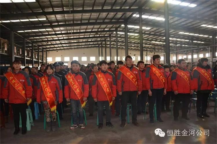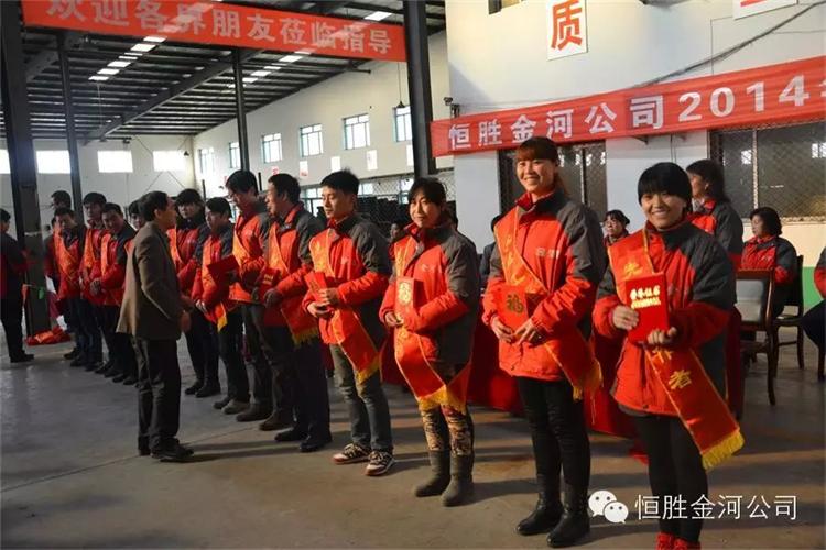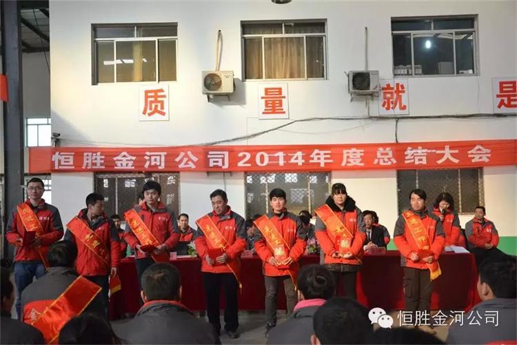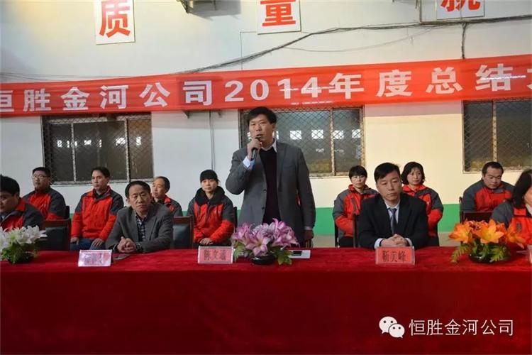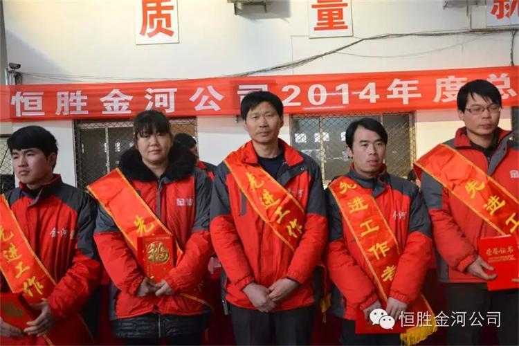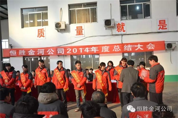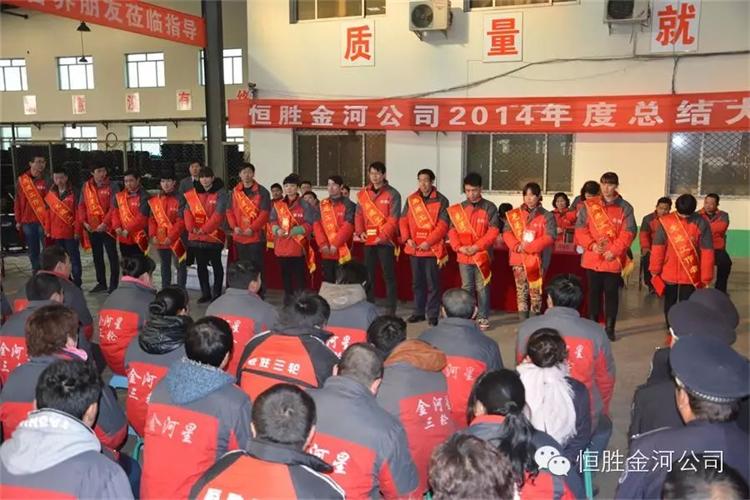 2015年2月8日下午,召開(kāi)恒勝金河2014年度總結表彰大會(huì ),伴隨著(zhù)入場(chǎng)音樂(lè ),全體員工整齊有序進(jìn)入會(huì )場(chǎng),合唱〈咱金河的人〉。公司高管、中干在主席臺就座,行政辦主任做2014年度工作總結報告。