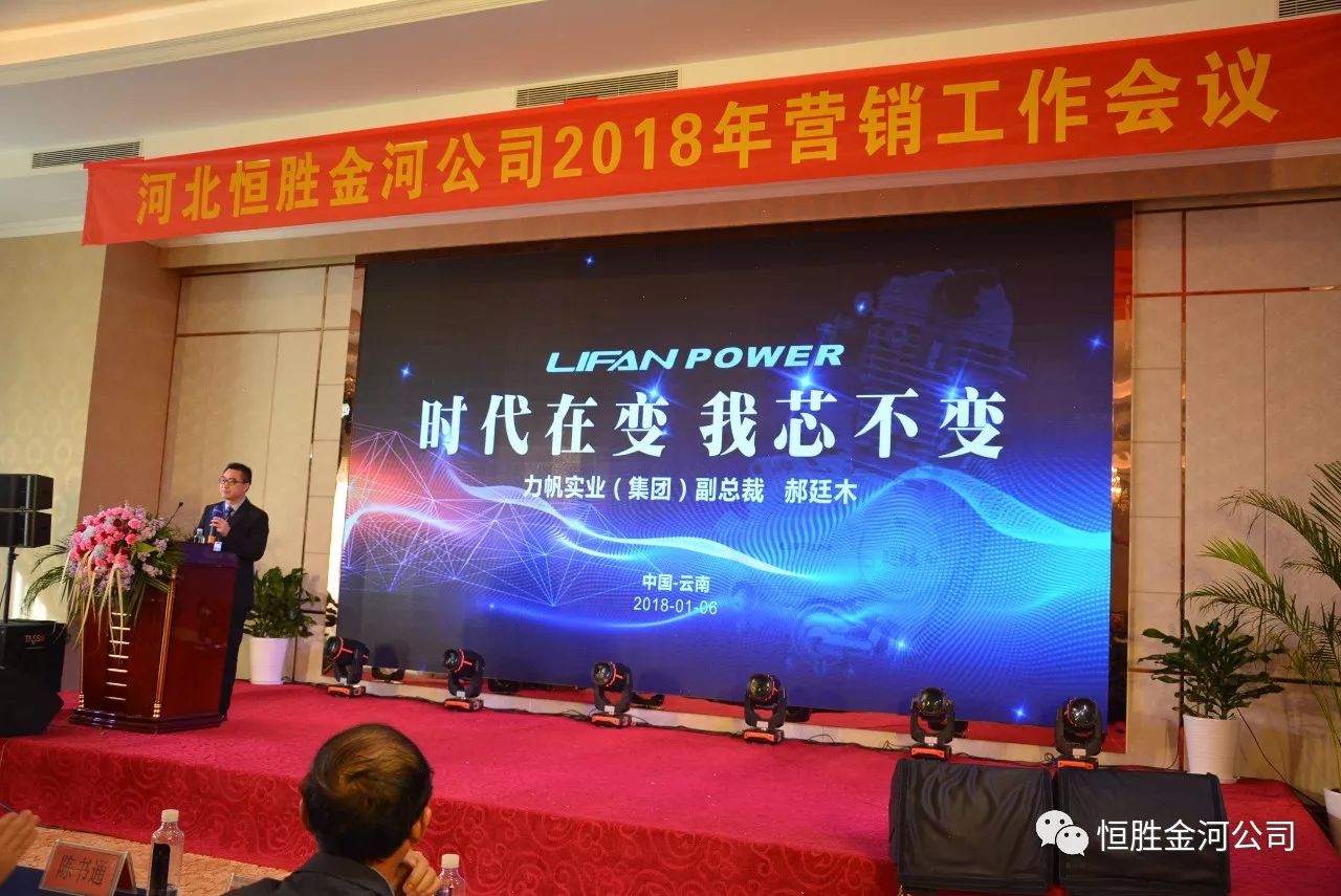 1月6日上午,河北恒勝金河公司2018年營(yíng)銷(xiāo)工作會(huì )議在云南省昆明市隆重召開(kāi),著(zhù)名主持人曉楠主持本次會(huì )議,公司總經(jīng)理、技術(shù)部長(cháng)、銷(xiāo)售經(jīng)理、力帆發(fā)動(dòng)機集團總裁、營(yíng)銷(xiāo)學(xué)博士教授、眾多傳媒與來(lái)自全國各地的經(jīng)銷(xiāo)商家人,齊聚一堂、共襄盛會(huì )。